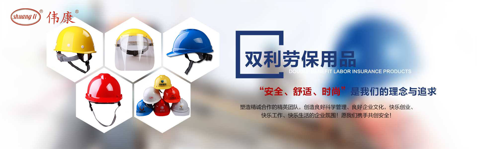 專業(yè)的安全帽生產(chǎn)廠家-鎮(zhèn)江市雙利勞保用品有限公司。雙利公司坐落于美麗富饒、景色怡人的蘇南名城——江蘇省鎮(zhèn)江市丹陽,地理位置優(yōu)越、世界第三長河——長江、滬寧高速、滬寧高鐵、312國道穿境而過,交通便利,環(huán)境怡人。鎮(zhèn)江市雙利勞保用品有限公司是鎮(zhèn)江市第一家創(chuàng)辦的專業(yè)生產(chǎn)安全帽的生產(chǎn)商,并申請擁有自己的品牌:shuangli牌和偉康牌,立足致力于安全帽研究,從原料入手研發(fā)出韌性更強、抗沖力更高的特點。公司根據(jù)實際運行需要建立高效、務實、有序的組織機構,實現(xiàn)現(xiàn)代化公司管理。同時公司具備專業(yè)完善的生產(chǎn)設備和成熟的安全帽生產(chǎn)工藝及先進的檢測儀器,為產(chǎn)品的質量奠定了堅實的基礎,各項技術指標均達到國家《GB2811-2019》《安全帽》標準。產(chǎn)品廣泛適用于建筑、林業(yè)、石油、石化、造船、港口、冶金等行業(yè)。 “安全、舒適、時尚”是我們的理念與追求,塑造精誠合作的精英團隊,創(chuàng)造科學管理、良好的企業(yè)文化,快樂創(chuàng)業(yè)、快樂工作、快樂生活的企業(yè)氛圍!愿我們攜手共創(chuàng)安全!